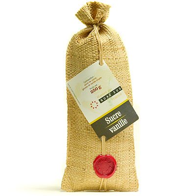 Naturally flavored, unrefined pure cane sugars from Quai Sud. Imported from France. Colorful raffia woven bag with wax seal.Pure Cane Sugar and Real Vanilla BeanTry these delicious flavored sugars for desserts, sprinkled on fresh fruit or ice cream, in yogurt or tea.